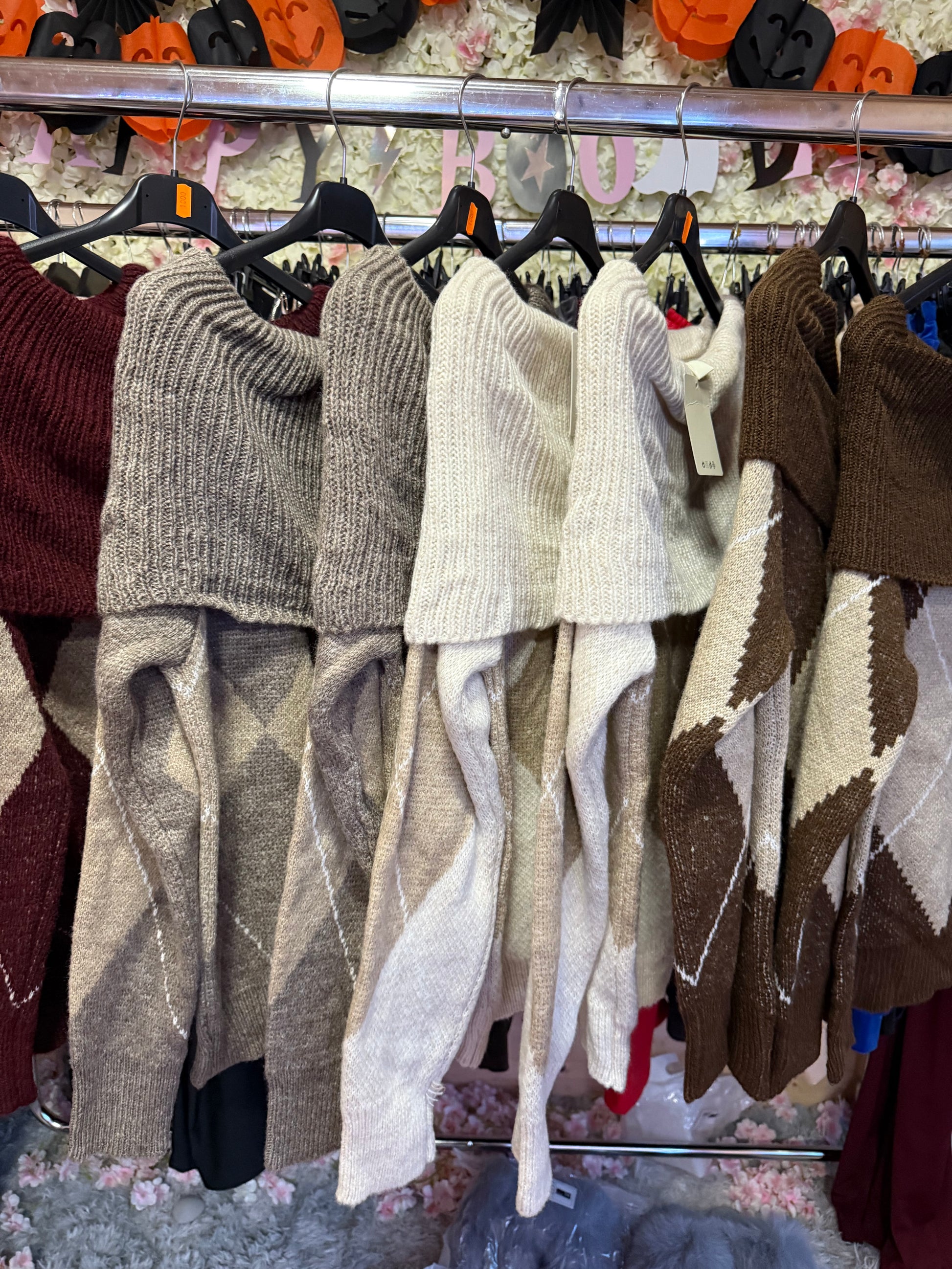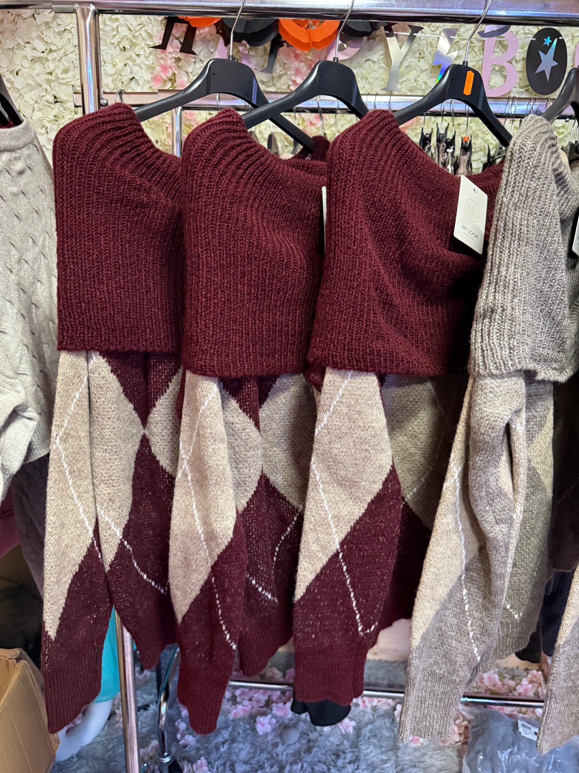 Stay cozy and chic with our Diamond off shoulder jumper. The stylish off shoulder design adds a touch of elegance to your wardrobe, while the diamond pattern adds a unique twist. Made with soft and durable material, this jumper is perfect for any occasion.